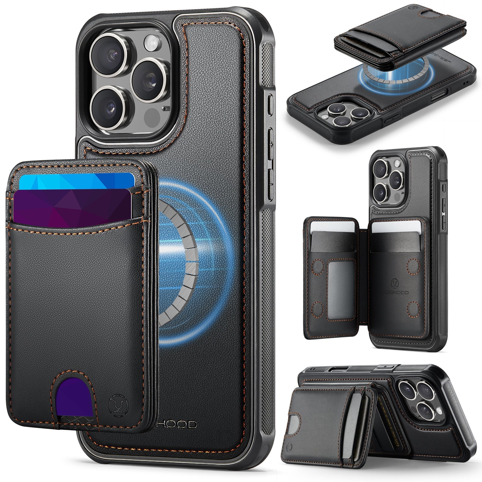 New 2-in-1 RFID Blocking Card Holder Leather Phone Case for iPhone 16 Pro Max
