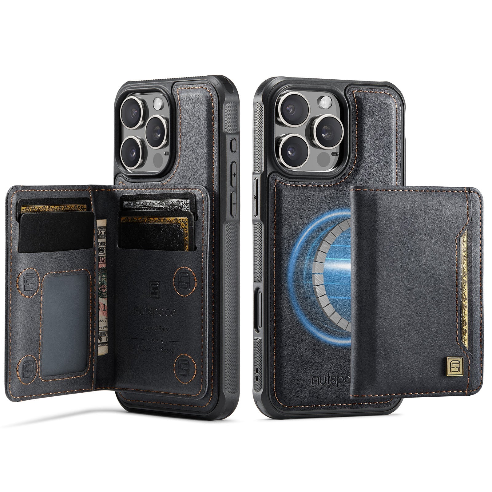 New 2-IN-1 RFID Blocking Card Holder Wireless Charging Leather Phone Case for iPhone
