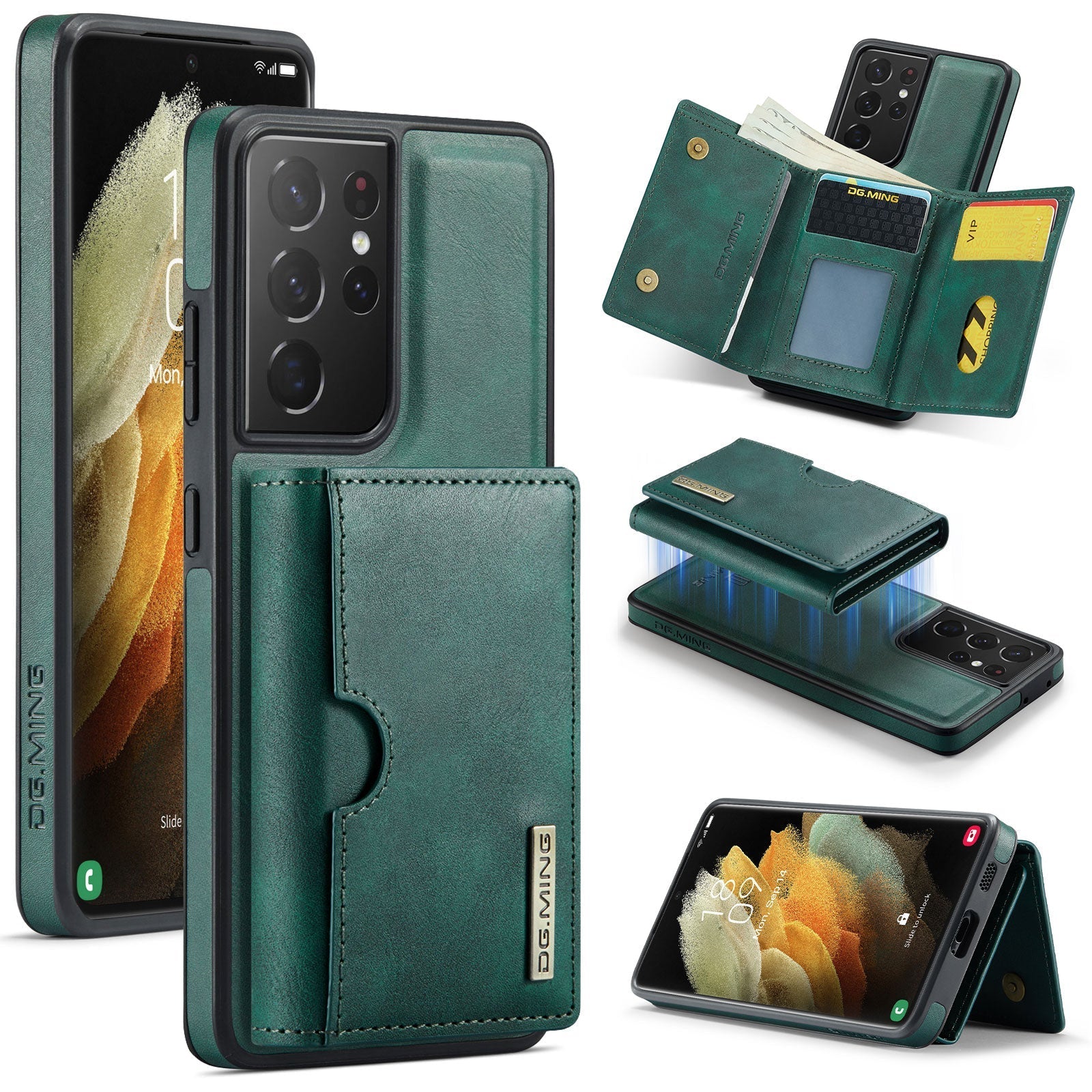 New 2-IN-1 RFID Blocking Wallet Card Holder Leather Phone Case for Samsung