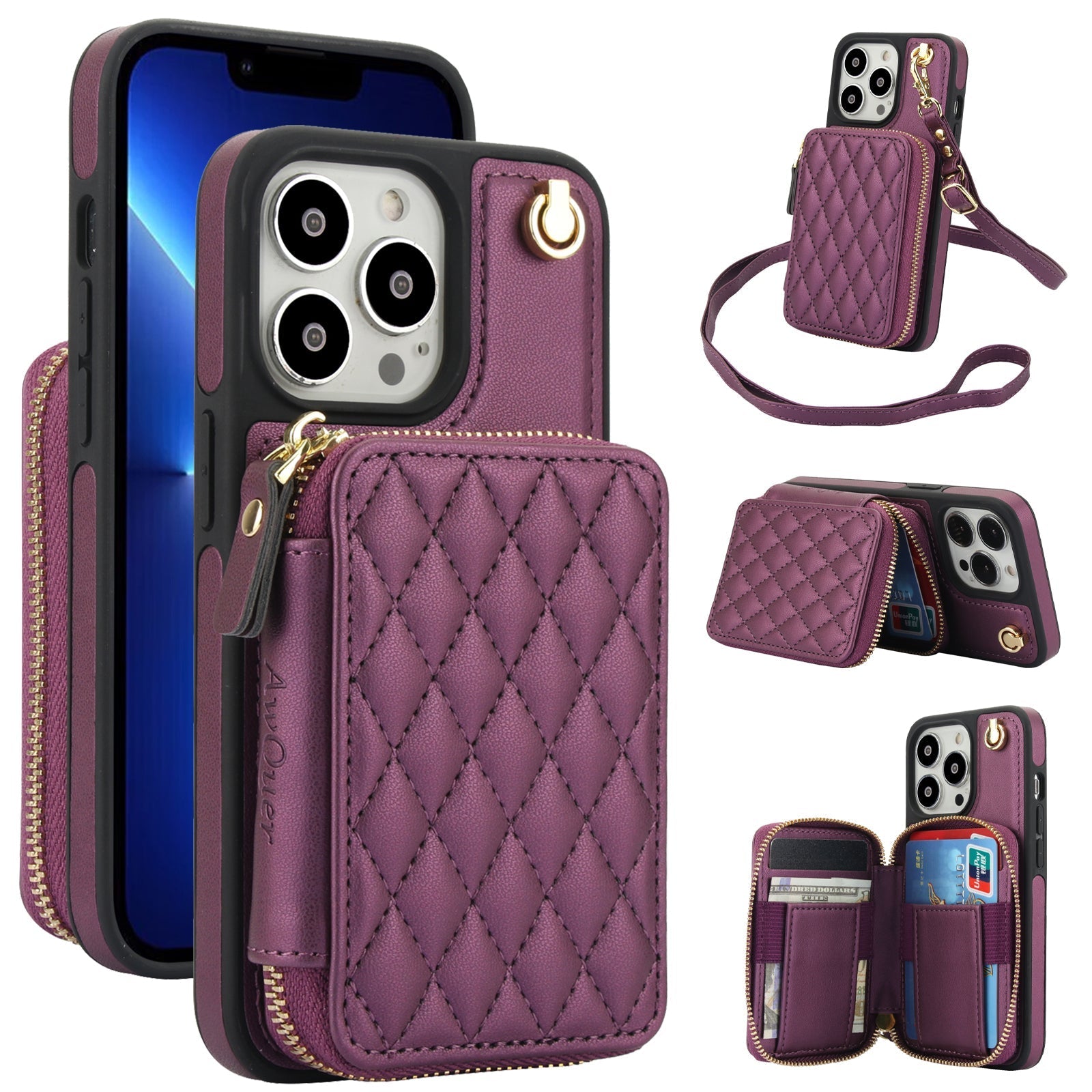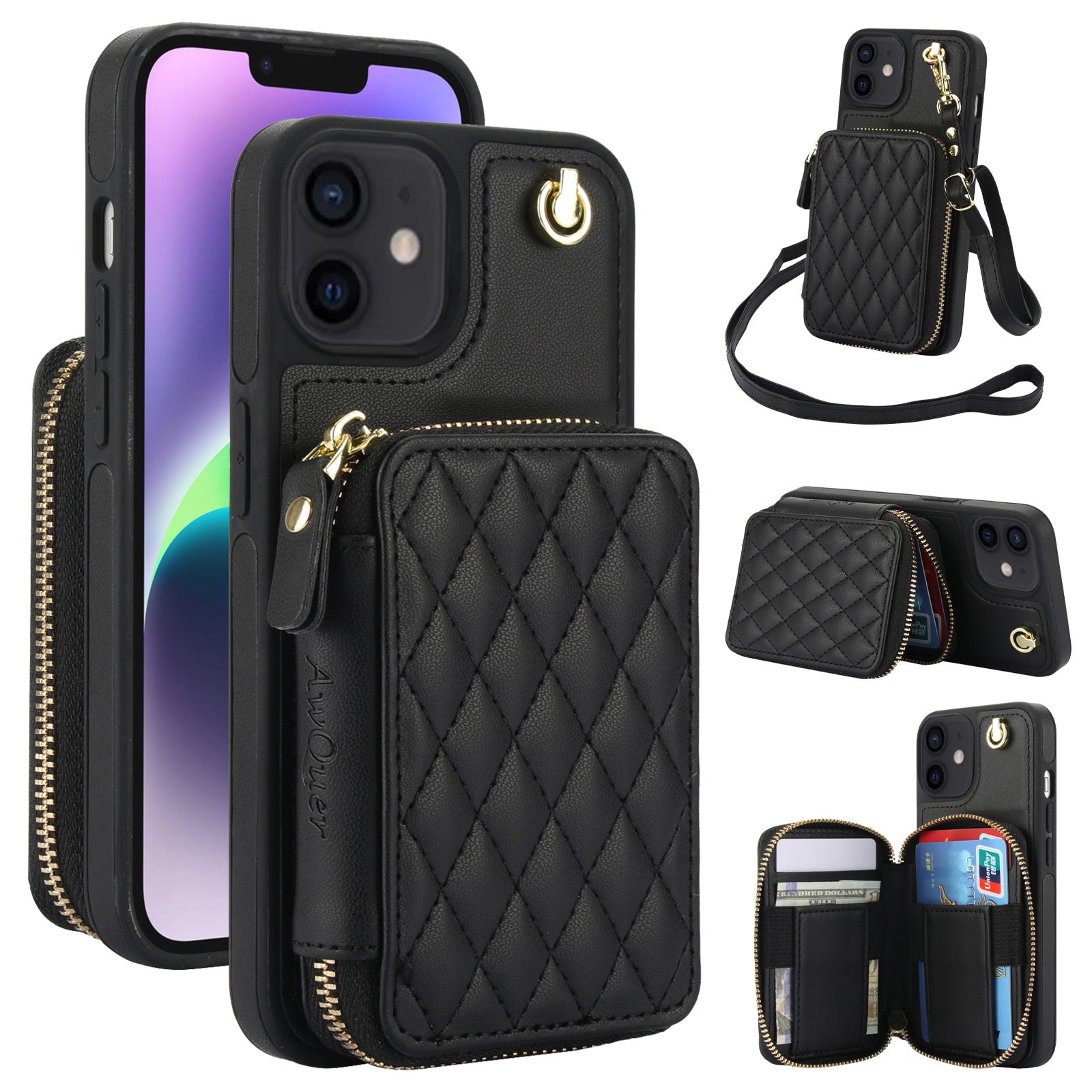 New RFID Blocking Crossbody Zipper Wallet Leather Phone Case for iPhone 12/12 Pro/12 Mini/12 Pro Max