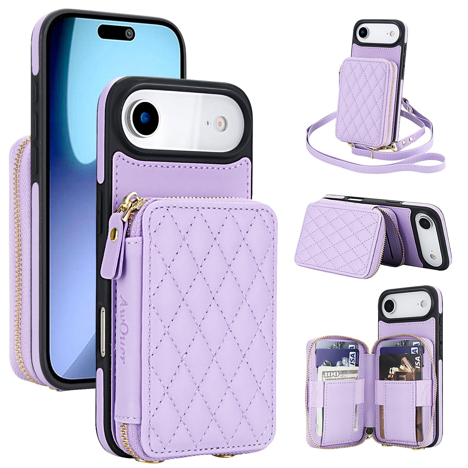 New RFID Blocking Crossbody Zipper Wallet Leather Phone Case for iPhone Air/17/17 Pro/17 Pro Max