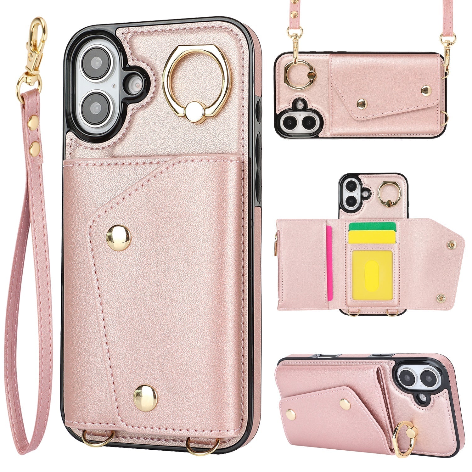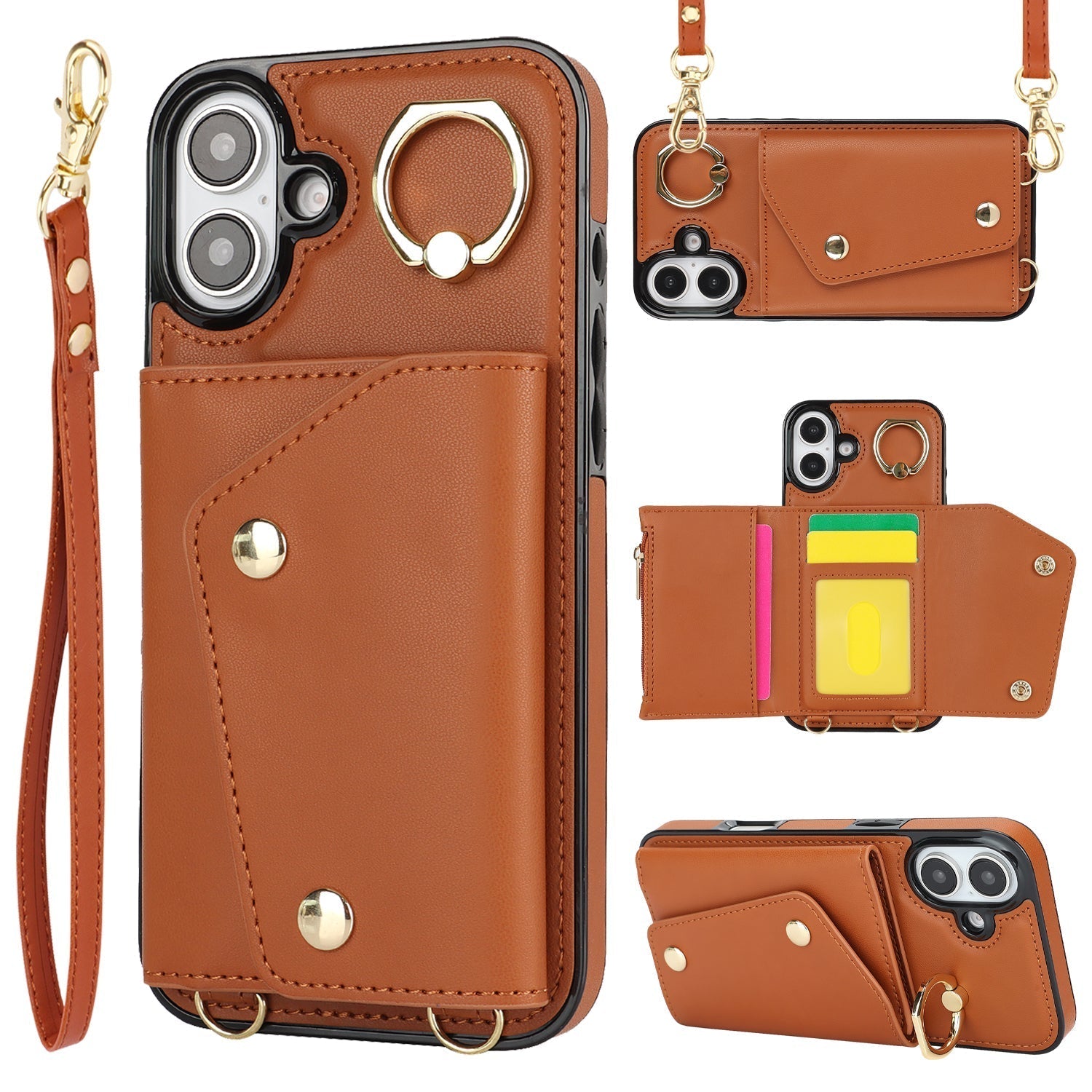 New Crossbody Zipper Wallet with Long and Short Lanyard Leather Phone Case for iPhone